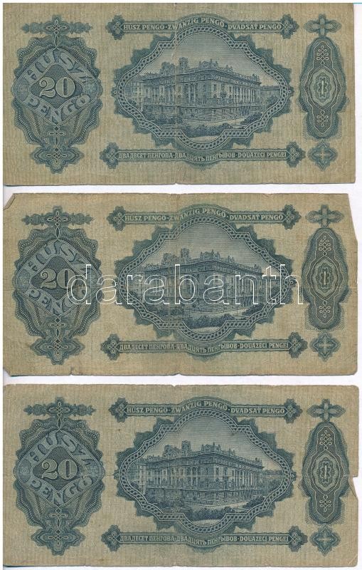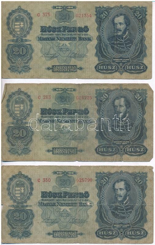 1930. 20P (3x) T:III- Adamo P11 https://www.darabanth.com/de/358-Fernauktion/358.0/Numismatik/Ungarische-Banknoten~2000006/1930-20P-3x-TIII-Adamo-P11~II2056059