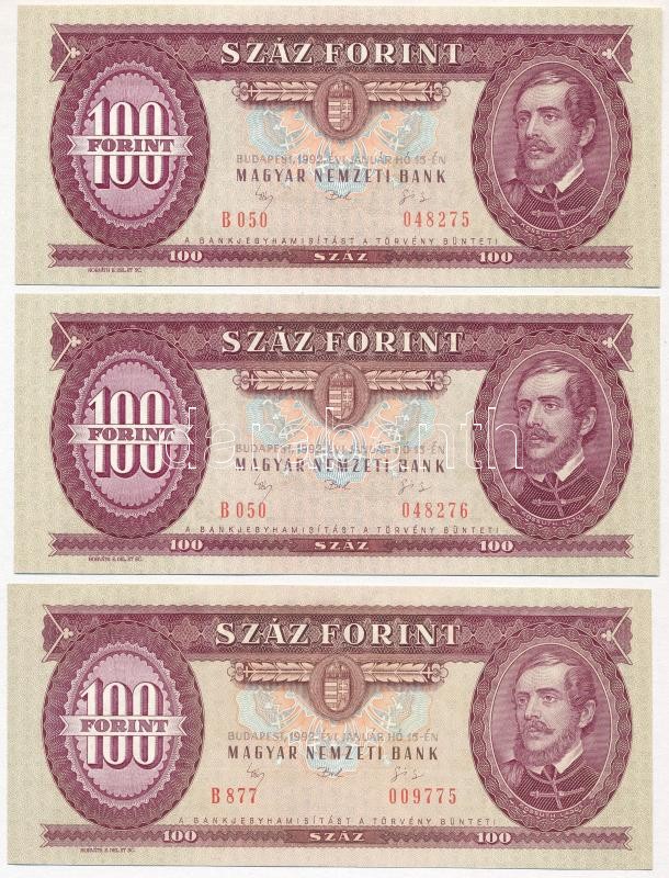 1992. 100Ft (3x) közte 2db sorszámkövető T:I