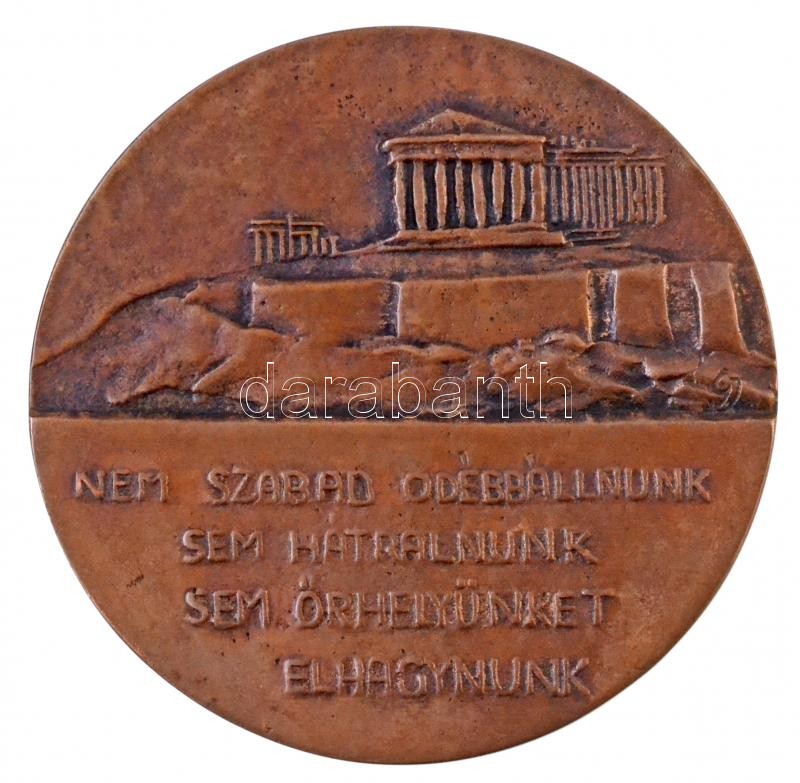 Beschreibung: DN "Szokratész / Nem szabad odébbállnunk sem hátrálnunk sem őrhelyünket elhagynunk" kétoldalas, öntött Br plakett (110mm) T:2