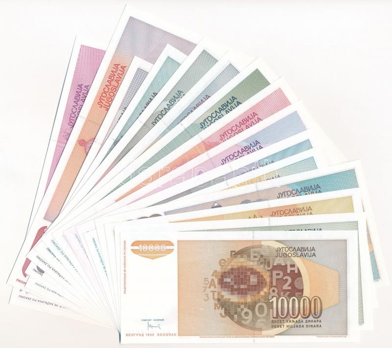 Yugoslavia 1992-1993. 100 Dinara - 10.000.000.000 Dinara (16xdiff) inflation issues C:UNC