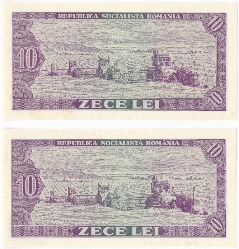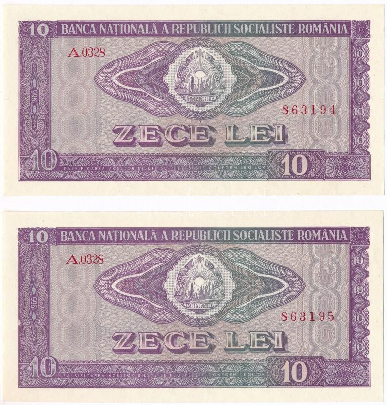 Romania 1966. 10 Lei (2x) se... https://www.darabanth.com/de/358-Fernauktion/358.0/Numismatik/Weltweit-Banknoten~2000012/Romania-1966-10L-2x-sorszamkoveto-TI-Romania-1966-10-Lei-2x-sequential-serials-CUNC~II2056644