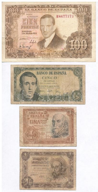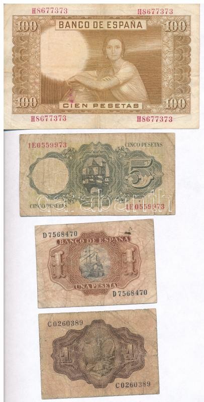 Spa... https://www.darabanth.com/de/358-Fernauktion/358.0/Numismatik/Weltweit-Banknoten~2000012/Spanyolorszag-1951-1P-plus-5P-plus-1953-1P-plus-100P-TIII-III-szakadas-Spain-1951-1-Peseta-plus-5-Peseta~II2047784