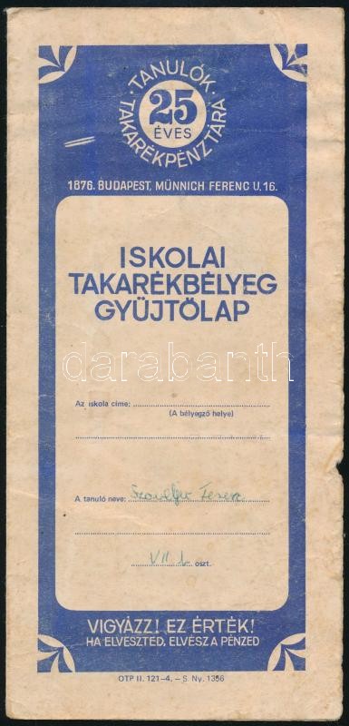 Beschreibung: Iskolai takarékbélyeg gyűjtőlap bélyegekkel