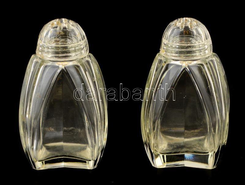 Beschreibung: Art deco só-bors szóró, egyiken belül apró csorbával, formába préselt, m: 11 cm (2×)