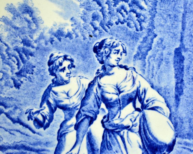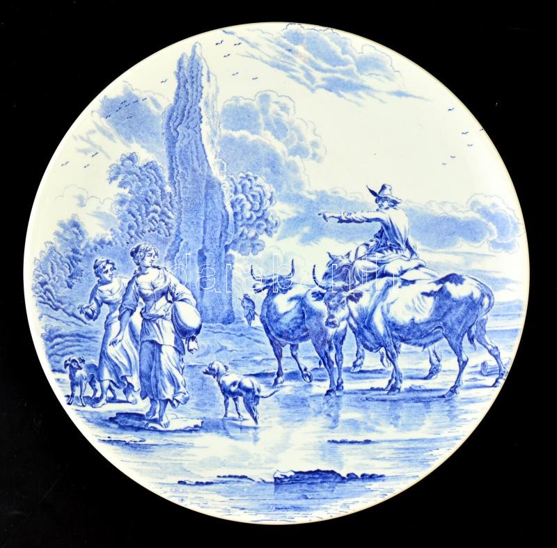 Beschreibung: Delfti fali dísztál. Jelzett, matricás, hibátlan. d:29 cm