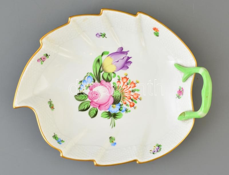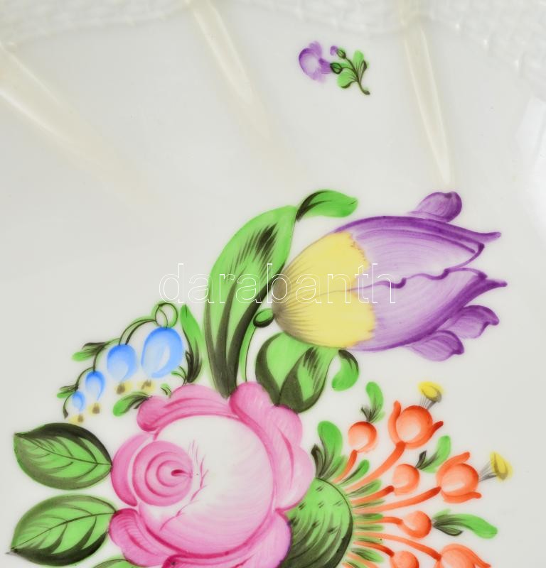 Beschreibung: Herendi virágmintás porcelán füles tál, kézzel festett, jelzett, kis kopásnyomokkal, 24×19 cm