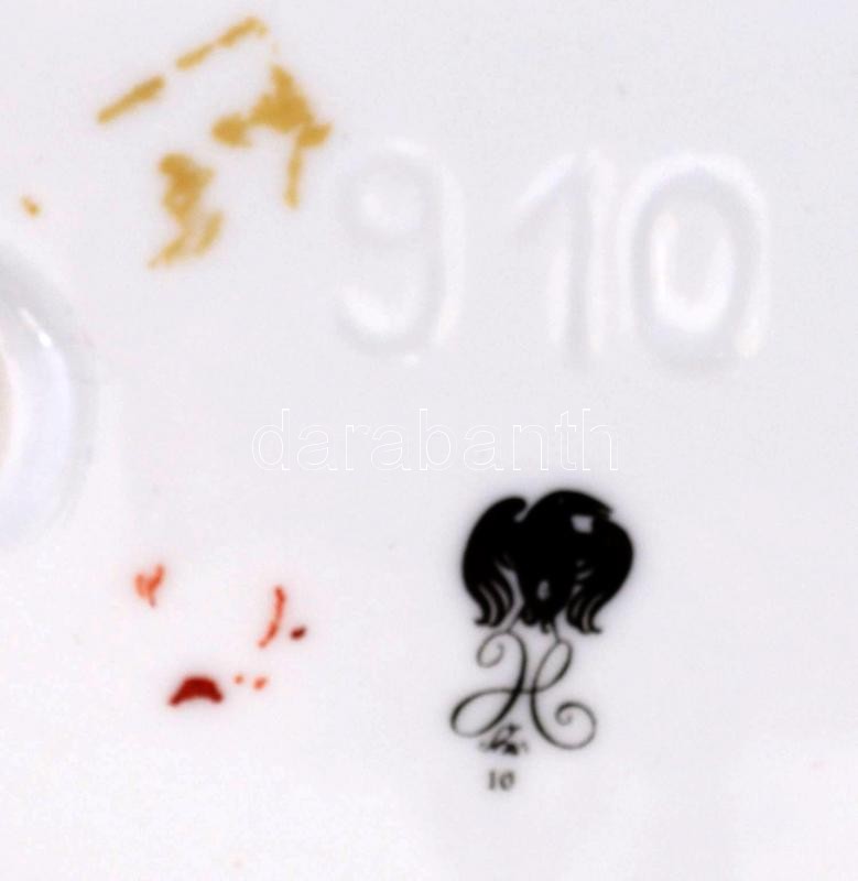 Beschreibung: Hollóházi Szász Endre által tervezett mintával díszített tálka ,matricás, jelzett, kis kopásokkal 14x12 cm