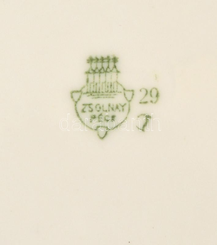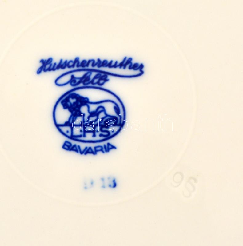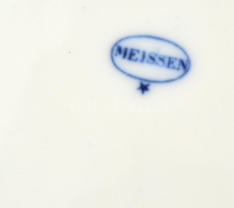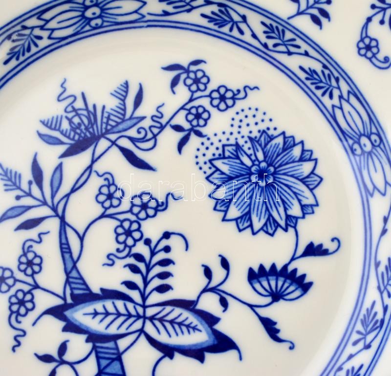 Zsolnay (3 db), Meisseni (2 db), Hutschenreuther (1 db) hagyma mintás tányér, levonóképes, jelzett, apró kopásnyomokkal, d:19 cm (4×), d:23,5 cm (2×), összesen: 6 db