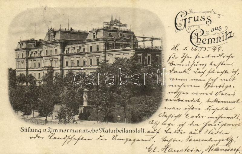 1899 Chemnitz, Stiftung v. Zimmermann'sche Naturheilanstalt / spa... https://www.darabanth.com/de/359-Fernauktion/359.0/Ansichtskarten/Deutschland~1000048/1899-Chemnitz-Stiftung-v-Zimmermannsche-Naturheilanstalt-spa-foundation-EB~II2067644
