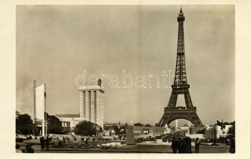 Beschreibung: Paris, Exposition Internationale 1937, Das Deutsche Haus / 1937 International Exposition, The German House, Eiffel Tower, advertisement