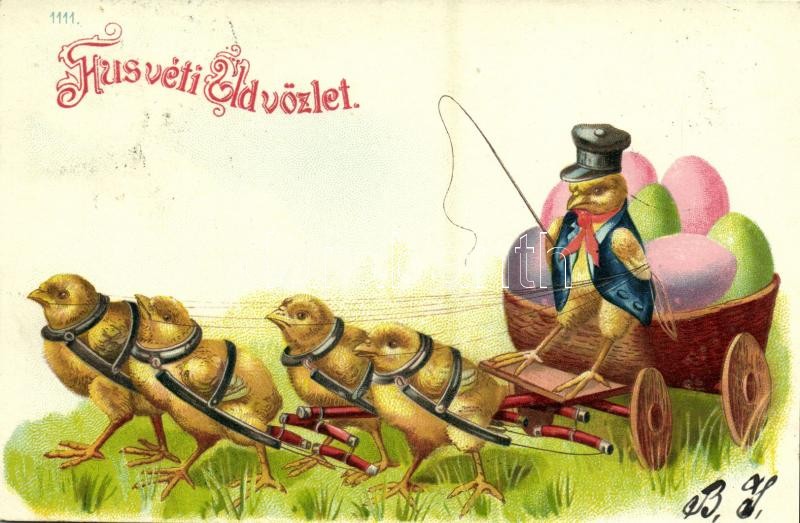 1900 Húsvéti Üdvözlet! / Easter greeting, chicken, litho https://www.darabanth.com/de/359-Fernauktion/359.0/Ansichtskarten/GruC39Fkarten-Feste~1000110/1900-Husveti-Udvozlet-Easter-greeting-chicken-litho~II2068249