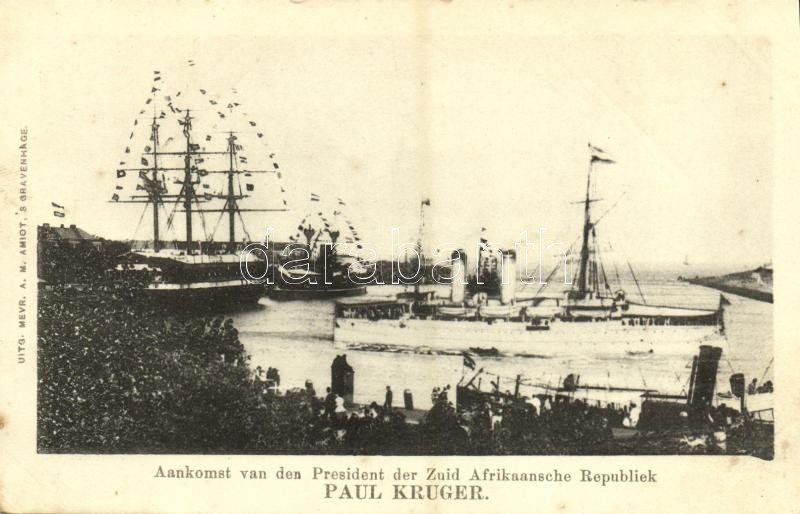 Aankomst van den President der Zuid Afrikaansche Republiek Paul Kruger / arrival of Paul Kruger, President of the South African Republic (Transvaal) in the Netherlands, steamship