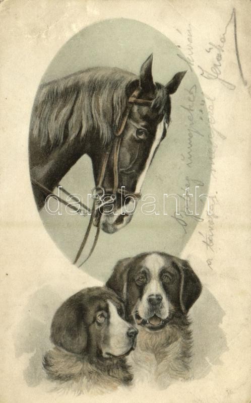 1910 Dogs with horse. Mary Mill Nr. 1507. (fa) https://www.darabanth.com/de/359-Fernauktion/359.0/Ansichtskarten/Hunde~1000095/1910-Dogs-with-horse-Mary-Mill-Nr-1507-fa~II2068513