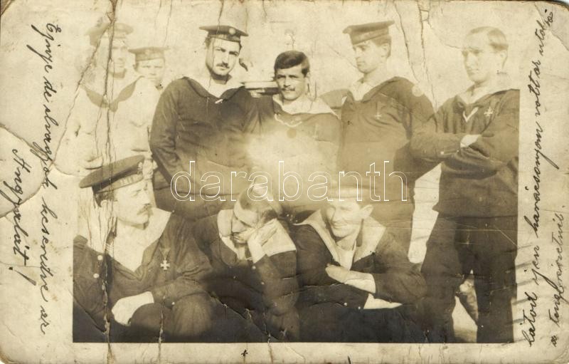 Beschreibung: 1913 SMS Viribus Unitis az Osztrák-Magyar Haditengerészet Tegetthoff-osztályú csatahajó matrózai / K.u.K. Kriegsmarine Matrosen / Austro-Hungarian Navy SMS Viribus Unitis Tegetthoff-class dreadnought battleship, mariners' group photo (b)