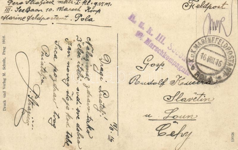 Beschreibung: 1916 Pola, Pula; K.u.K. Kriegsmarine Marine Kasino / Austro-Hungarian Navy casino / Osztrák-magyar haditengerészeti kaszinó + "K.U.K. III. SEEBAON. 10. MARSCHKOMPAGNIE"