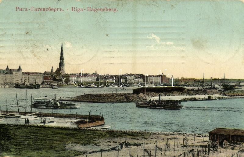 1910 Riga, Hagensberg / general view, quay, steamships (EK) https://www.darabanth.com/de/359-Fernauktion/359.0/Ansichtskarten/Lettland~1000040/1910-Riga-Hagensberg-general-view-quay-steamships-EK~II2062561