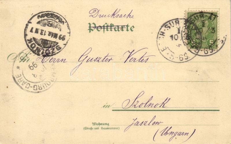 Beschreibung: 1899 Luxembourg Luxemburg; general views. M. Knopf Lit. B. No. 971. Art Nouveau, floral, litho (fl)