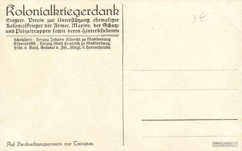 Auf Beobachtungsposten vor Tsingtau. Kolonialkriegerdank / WWI German ... https://www.darabanth.com/de/359-Fernauktion/359.0/Ansichtskarten/Militaria~1000092/Auf-Beobachtungsposten-vor-Tsingtau-Kolonialkriegerdank-WWI-German-military-observation-posts-nea~II2068479