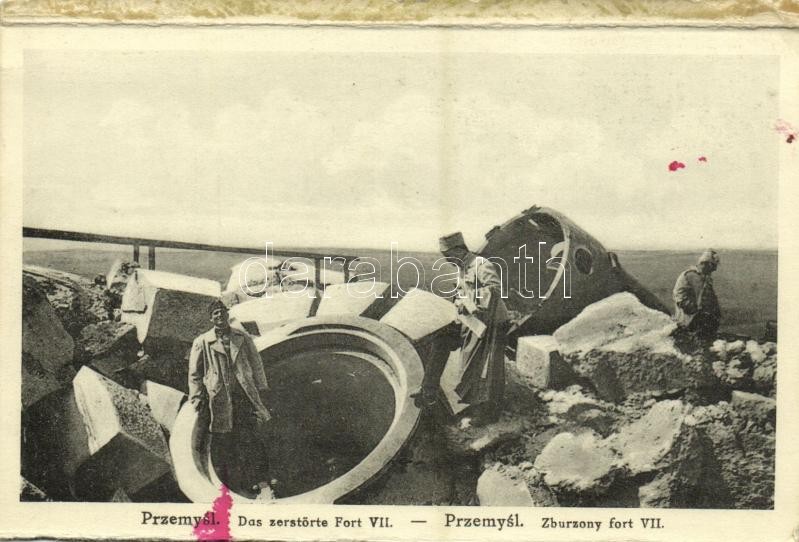 Első világháborús osztrák-magyar katonai lap. A szétlőtt 7. sz. erőd Przemysl-ben / WWI K.u.K. (Austro-Hungarian) military, destroyed fort / Das zerstörte Fort VII. (képeslapfüzetből / from postcard booklet)