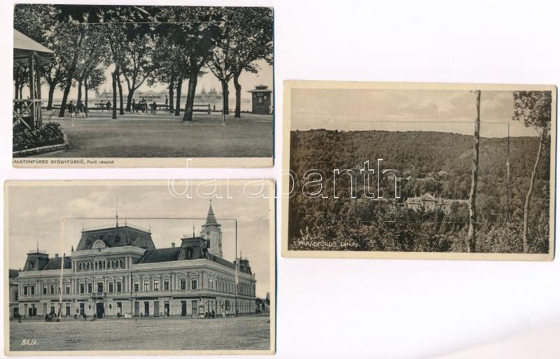 Beschreibung: 3 db RÉGI magyar képeslap: Balatonfüred, Baja, Parádfürdő / 3 pre-1945 Hungarian town-view postcards