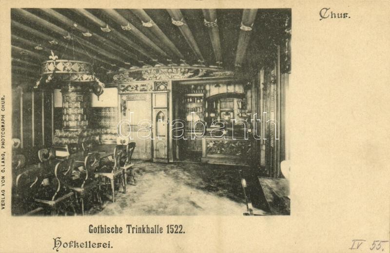 Chur, Hofkellerei, Gothische Trinkhalle 1522 / restaurant interior https://www.darabanth.com/de/359-Fernauktion/359.0/Ansichtskarten/Schweiz~1000063/Chur-Hofkellerei-Gothische-Trinkhalle-1522-restaurant-interior~II2063433