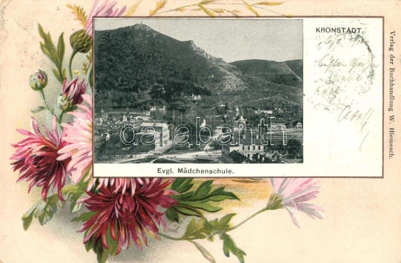 Beschreibung: 1900 Brassó, Kronstadt, Brasov; Evgl. Mädchenschule. Verlag W. Hiemesch / Evangélikus lányiskola. W. Hiemesch kiadása, szecessziós litho virágos keret / Lutheran girls' school. Art Nouveau, floral, litho frame (EK)