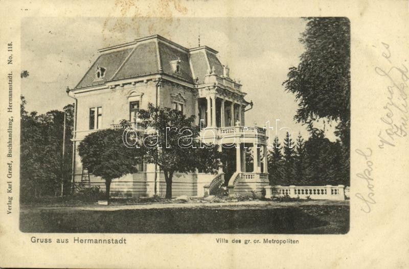 1906 Nagyszeben, Hermannstadt, Sibiu; Villa des gr. or. Metropoliten / Az ortodox metropolita villája. Kiadja Karl Graef No. 118. / villa of the Greek Orthodox metropolitan (fl)