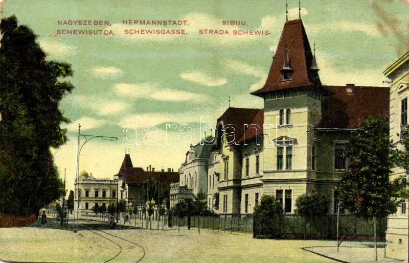 1914 Nagyszeben, Hermannstadt, Sibiu; Schewis utca, villamos / Schewis... https://www.darabanth.com/de/359-Fernauktion/359.0/Ansichtskarten/Siebenburgen~1000005/1914-Nagyszeben-Hermannstadt-Sibiu-Schewis-utca-villamos-Schewisgasse-Strada-Schewis-stree~II2064350