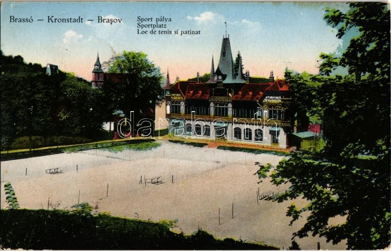 Beschreibung: 1916 Brassó, Kronstadt, Brasov; sport pálya, teniszpálya / Sportplatz / sport field and tennis court / Loe de tenis si patinat
