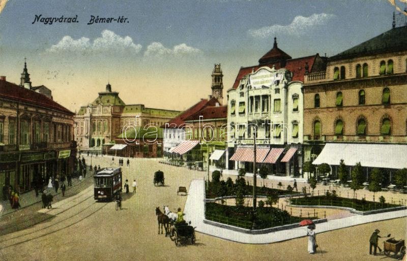 Beschreibung: 1917 Nagyvárad, Oradea; Bémer tér, villamos, üzletek. Kiadja Sonnenfeld Adolf műintézete / square, tram, shops (kopott sarkak / worn corners)