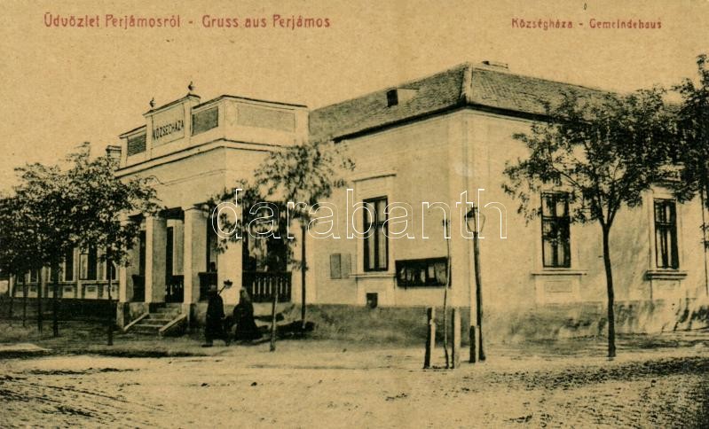 Perjámos, Periam; Községháza. W. L. 1328. / Gemeindehaus / town hall https://www.darabanth.com/de/359-Fernauktion/359.0/Ansichtskarten/Siebenburgen~1000005/Perjamos-Periam-Kozseghaza-W-L-1328-Gemeindehaus-town-hall~II2065963