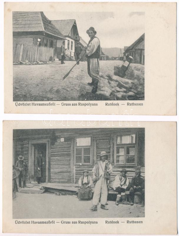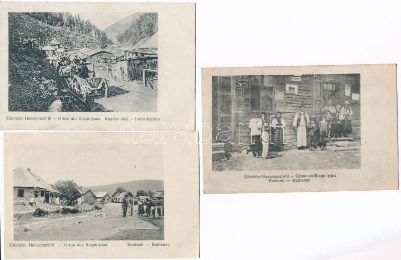 Beschreibung: Ruszpolyána, Havasmező, Havaskő, Poienile de sub Munte, Ruspoiana (Máramaros); - 5 db használatlan régi képeslap / 5 pre-1945 unused postcards