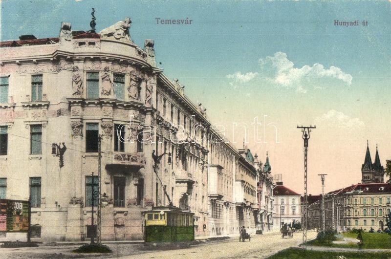 Temesvár, Timisoara; Hunyadi út, villamos / street view with tram https://www.darabanth.com/de/359-Fernauktion/359.0/Ansichtskarten/Siebenburgen~1000005/Temesvar-Timisoara-Hunyadi-ut-villamos-street-view-with-tram~II1579752