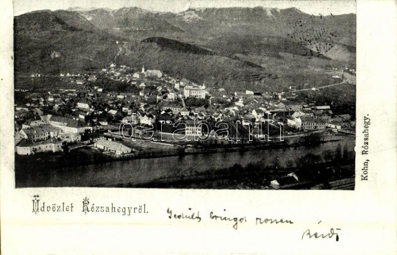 Beschreibung: 1899 Rózsahegy, Ruzomberok; látkép zsinagógával. Kiadja Kohn / general view with synagogue