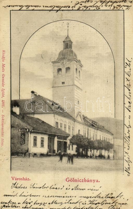 1902 Gölnicbánya, Gelnica; Városház, Bernáth Ferenc üzlete. Matz Guszt... https://www.darabanth.com/de/359-Fernauktion/359.0/Ansichtskarten/Slowakei~1000006/1902-Golnicbanya-Gelnica-Varoshaz-Bernath-Ferenc-uzlete-Matz-Gusztav-kiadasa-town-hall~II2067683