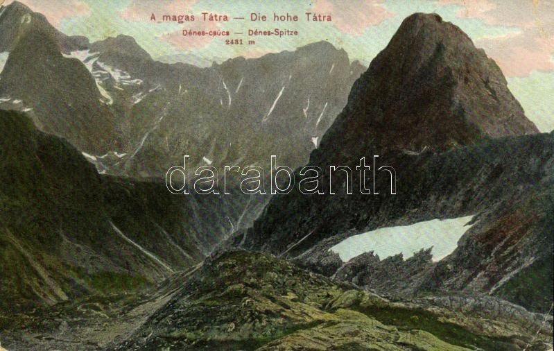 1906 Tátra, Magas Tátra, Vysoké Tatry; Dénes-csúcs. Dr. Trenkler Co. Tát. 46. / Dénes-Spitze / Niznie Rysy / mountain peak in the High Tatras (kis szakadás / small tear)