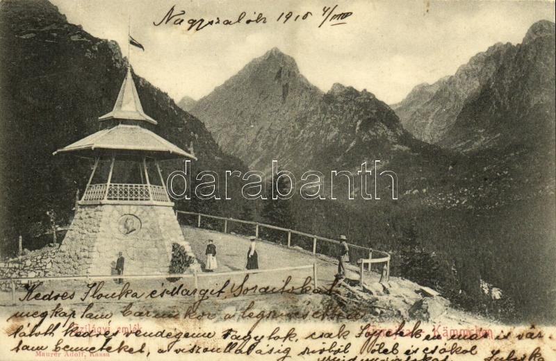 Beschreibung: 1910 Tátra, Magas-Tátra, Vysoké Tatry; Tarajka, Szilágyi emlék / Kämmchen / monument in Hrebienok (EK)