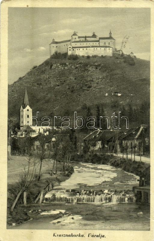 Krasznahorkaváralja, Krásnohorské Podhradie; - 3 db régi városképes lap Krasznahorka várával / 3 pre-1945 town-view postcards with Hrad Krásna Horka castle