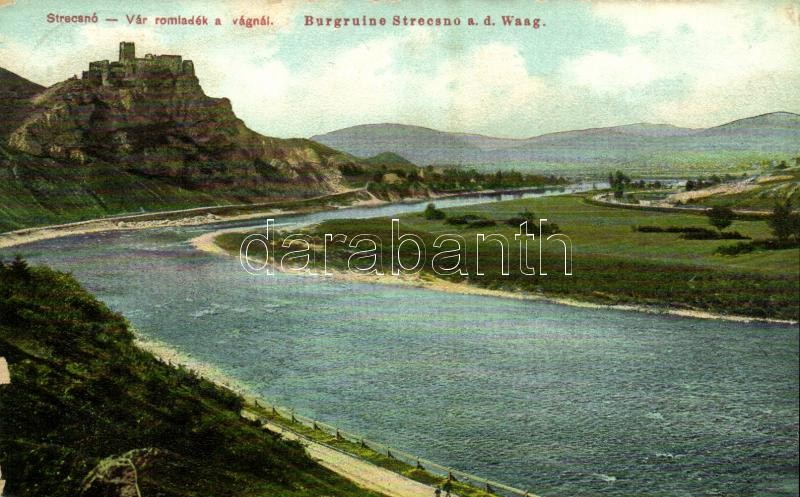 Sztrecsnó, Sztrecsény, Strecno (Ruttka, Vrútky); Vár romladék a Vágnál, Sztrecsnói vár. Feitzinger Ede No. 634. / Burgruine Strecsno a. d. Waag / castle ruins by River Váh / Strecniansky zámok, Povazie (EK)