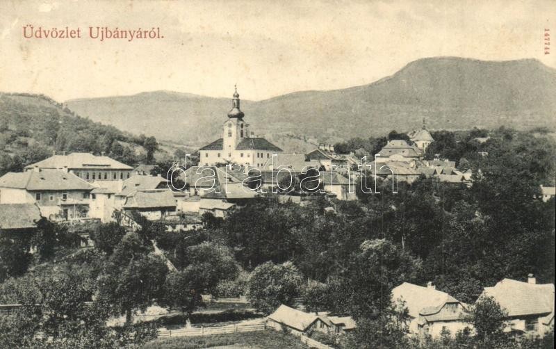 Beschreibung: Újbánya, Königsberg, Nova Bana; látkép, templom / general view, church (EK)