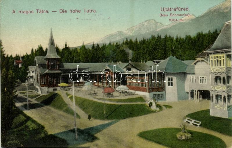 Újtátrafüred, Neu-Schmecks, Novy Smokovec (Magas Tátra, Vysoké Tatry); https://www.darabanth.com/de/359-Fernauktion/359.0/Ansichtskarten/Slowakei~1000006/Ujtatrafured-Neu-Schmecks-Novy-Smokovec-Magas-Tatra-Vysoke-Tatry-~II2067753
