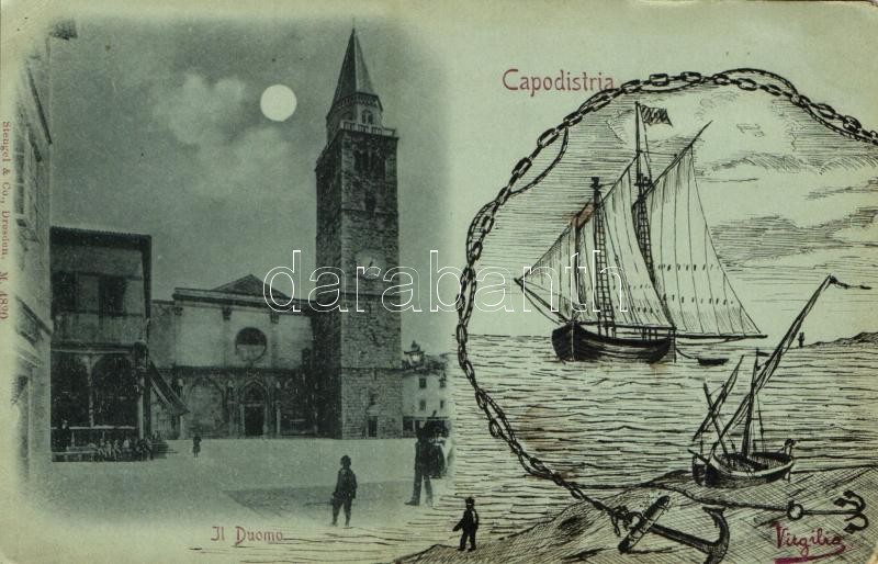 Beschreibung: 1898 Koper, Capodistria, Capo D'Istria; Il Duomo / cathedral with hand-drawn sailing vessel s: Virgilio (EM)