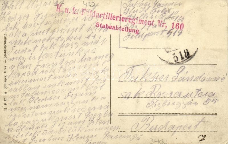Beschreibung: Maribor, Marburg an der Drau; Ausblick vom Schlapfenberg / general view + K. u. k. Feldartillerieregiment Nr. 160. Stabsabteilung cancellation