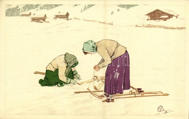 Beschreibung: Winter sport art postcard. Skiing. Vouga & Cie No. 120. litho s: Pellegrini