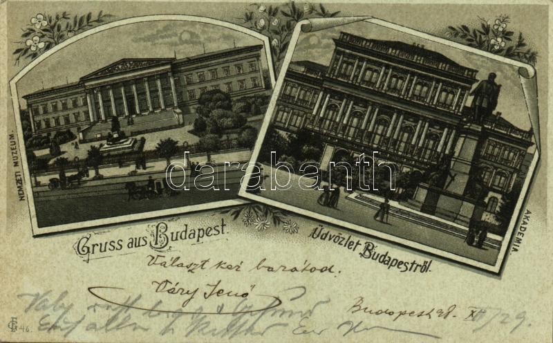 1898 Budapest, Nemzeti Múzeum, Akadémia. Art Nouveau, floral, litho https://www.darabanth.com/de/359-Fernauktion/359.0/Ansichtskarten/Ungarn~1000004/1898-Budapest-Nemzeti-Muzeum-Akademia-Art-Nouveau-floral-litho~II2067852