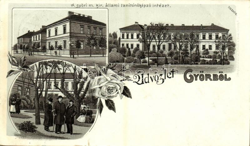 1899 Győr, M. kir. állami tanítónőképző intézet, urak. Art Nouveau, fl... https://www.darabanth.com/de/359-Fernauktion/359.0/Ansichtskarten/Ungarn~1000004/1899-Gyor-M-kir-allami-tanitonokepzo-intezet-urak-Art-Nouveau-floral-litho-szakadas~II2061667