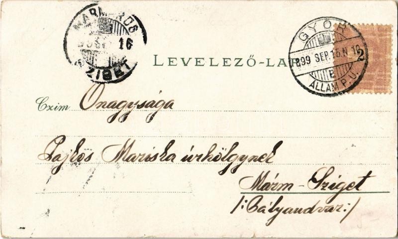 Beschreibung: 1899 Győr, M. kir. állami tanítónőképző intézet, urak. Art Nouveau, floral, litho (szakadás / tear)