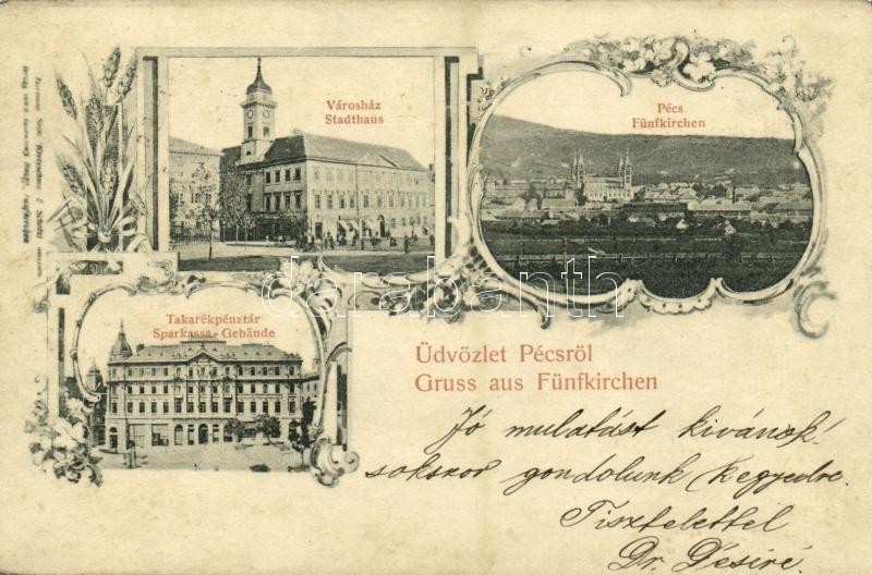 1899 Pécs, Fünfkirchen; városház, takarékpénztár. Art Nouveau, floral https://www.darabanth.com/de/359-Fernauktion/359.0/Ansichtskarten/Ungarn~1000004/1899-Pecs-Funfkirchen-varoshaz-takarekpenztar-Art-Nouveau-floral~II2063352
