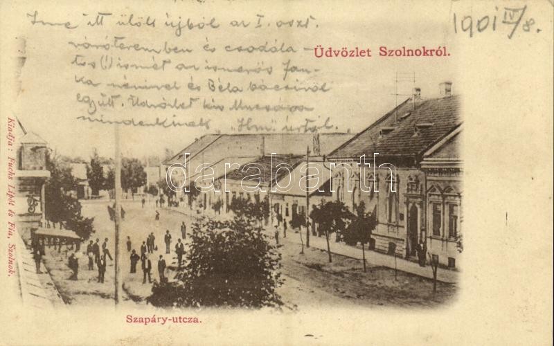 1901 Szolnok, Szapáry utca. Fuchs Lipót és fia kiadása https://www.darabanth.com/de/359-Fernauktion/359.0/Ansichtskarten/Ungarn~1000004/1901-Szolnok-Szapary-utca-Fuchs-Lipot-es-fia-kiadasa~II2063311