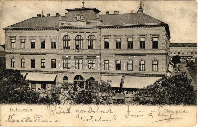 1902 Debrecen, Tisza Palota, Doszpoly János, Benyáts Emil, Neumann Testvérek, Tarbay üzlete, Első Magyar Általános Bizosító Társaság Főügynöksége. Komáromi J. felvétele és kiadása